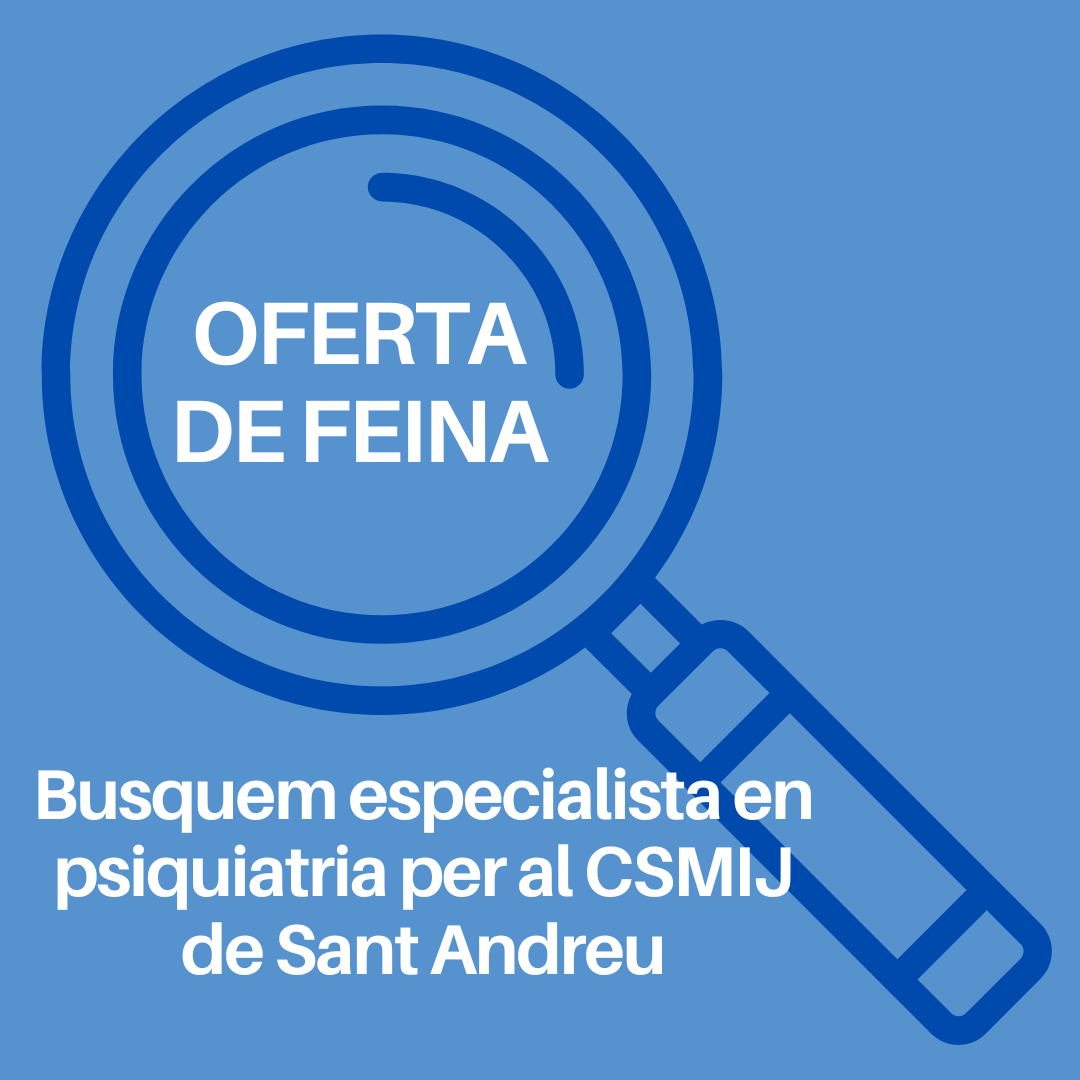 Busquem un psiquiatre/a per al Centre de Salut Mental Infantil i juvenil (CSMIJ) de Sant Andreu, a jornada completa, amb incorporació immediata.